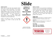 Slide es la combinación perfecta de agentes desmoldeantes y solvente naranja que mantiene el asfalto más caliente y pegajoso en movimiento fuera de las plataformas de camiones y basureros. No tóxico y seguro para los trabajadores y el medio ambiente, la formulación de Slide no contiene combustible diesel para mantener contentos a los inspectores. Úselo a razón de 20 a 24 onzas por plataforma de descarga de 12 yardas. Rocíe Slide directamente sobre las plataformas de los camiones y equipos que estén en contacto con el asfalto. Consulte la etiqueta del producto para obtener más instrucciones.