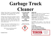Limpiador de camiones de basura hecho específicamente para limpiar camiones sucios y grasientos, contenedores de basura, contenedores de basura y equipos, además de ayudar a controlar el olor. Este producto funciona a través de la suciedad más resistente. Aplicación con brocha o rociador usando un equipo de lavado a presión en una dilución de 10 a 1 hasta 40 a 1. Una solución más fuerte que 10 a 1 puede ser dañina para la pintura. Pruebe primero en un área pequeña.